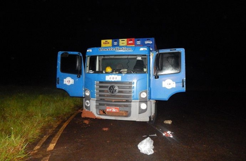 O choque causou um incêndio que atingiu a carreta. A estrada ficou interditada até que as chamas fossem controladas pelos militares.