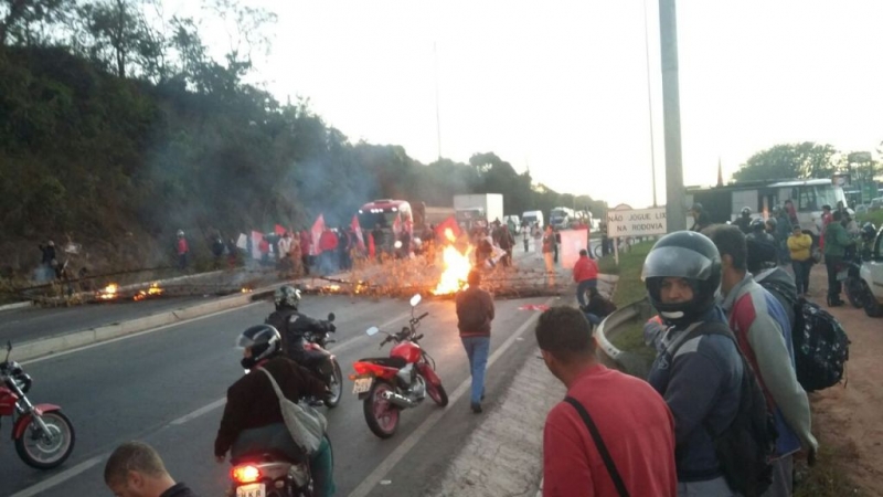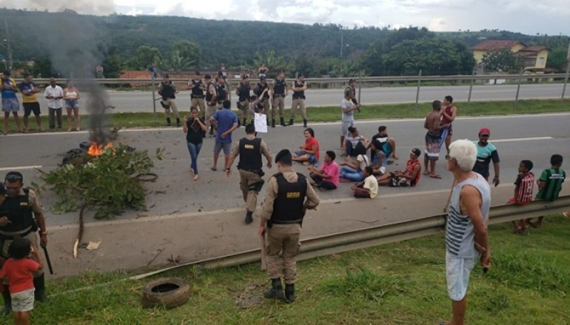 A MG-164 ficou interditada por cerca de quatro horas. Moradores e comerciantes atearam fogo em galhos e pneus. Militares estiveram no local.