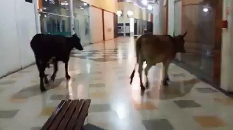 Animais entraram no centro de compras em Lavras (MG) e andaram próximas às lojas. Elas foram retiradas por seguranças.