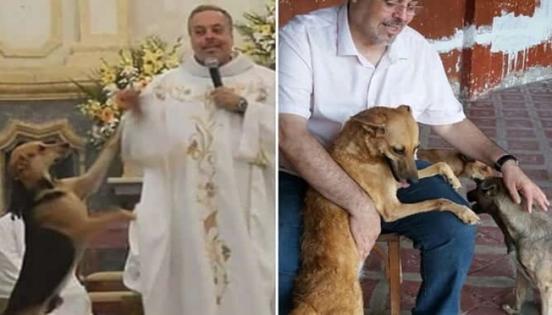 Padre leva animais abandonados pra missa e promove adoção