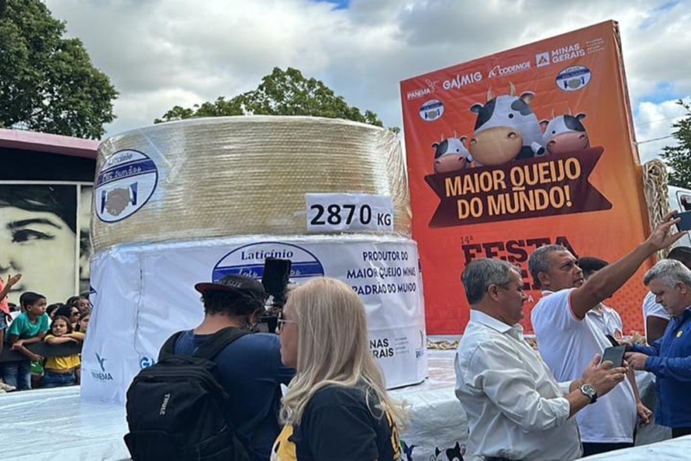 Maior queijo do mundo, com 2.870 kg, é apresentado em evento no interior de Minas