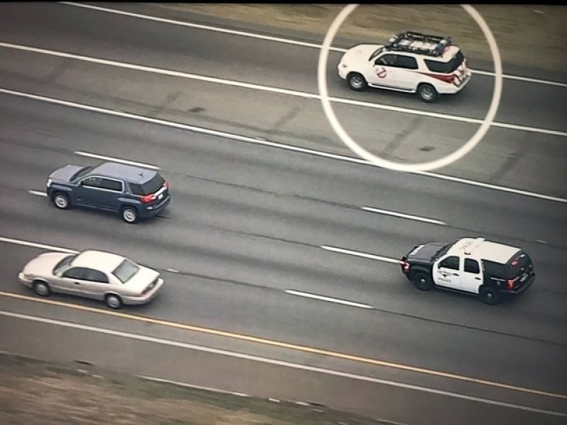 Polícia aparece perseguindo “carro dos caça fantasmas” e imagem faz sucesso na internet