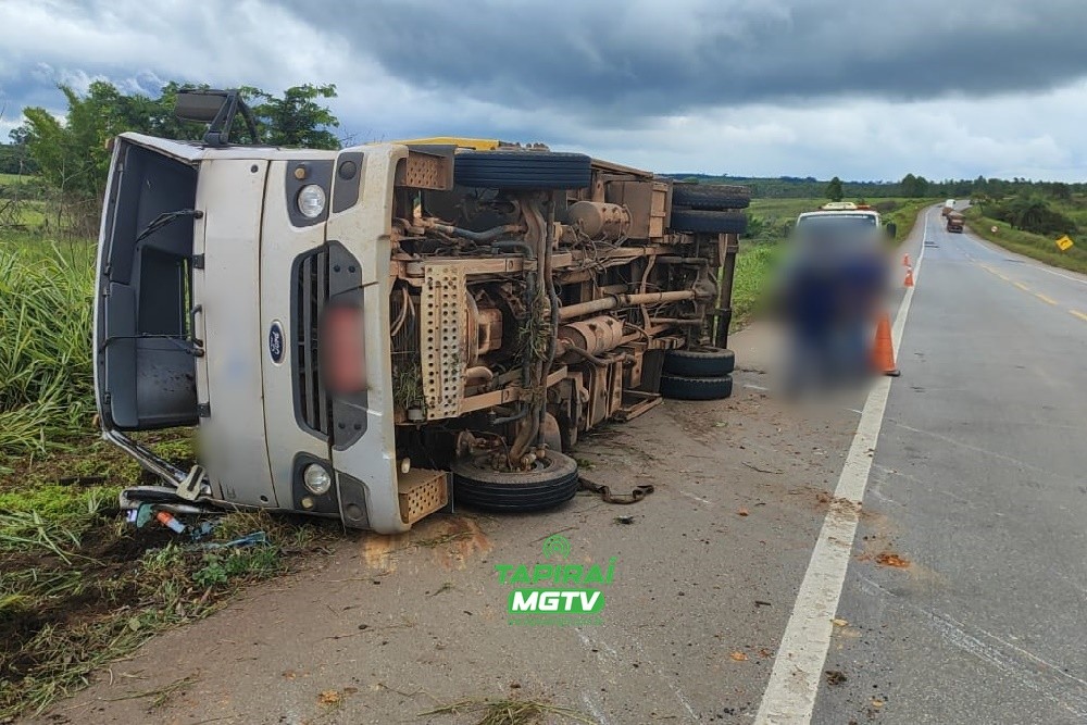 Vídeo: Tombamento de caminhão é registrado na BR-262, na Serra de Luz