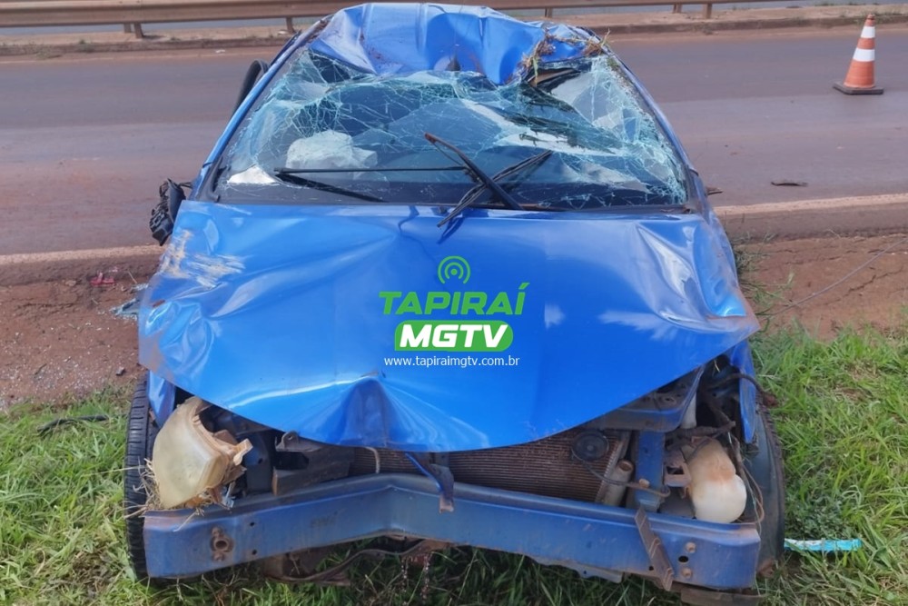 Três pessoas da mesma família ficam feridas após carro capotar na BR-262