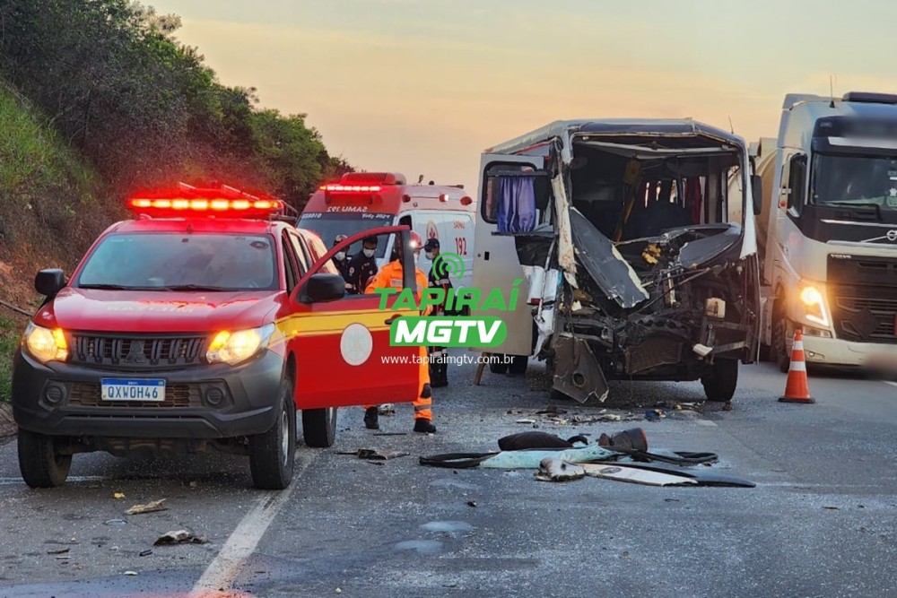 Vídeo: Ônibus com pacientes bate na traseira de carreta e dez ficam feridos na BR-262