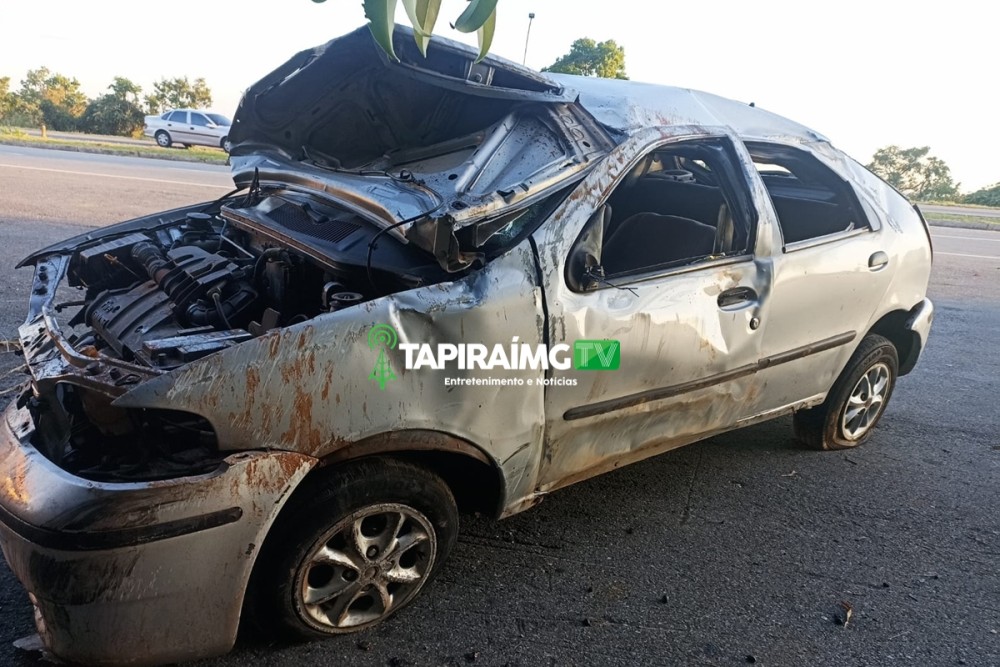 Motorista morre e passageiro fica ferido após carro capotar na BR-262