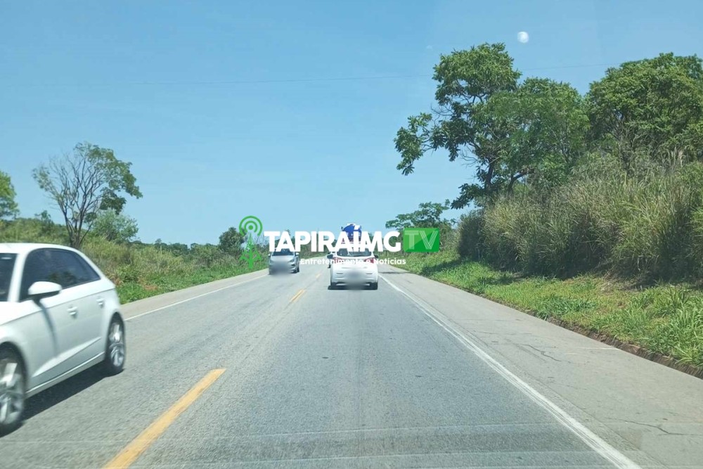 Caminhão transportando carro de luxo cai em barranco na BR-262 em Campos Altos