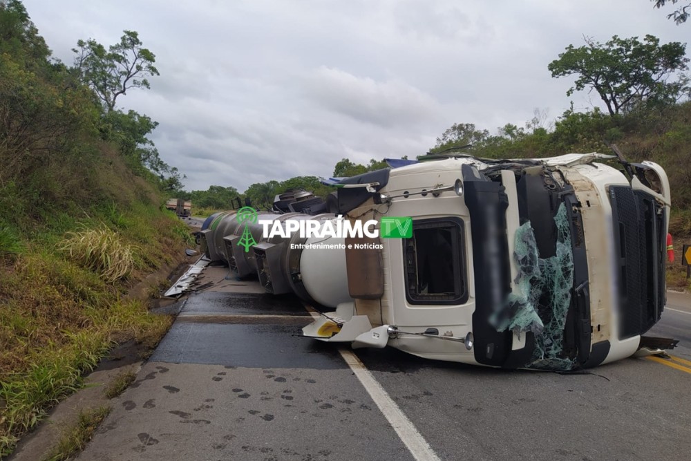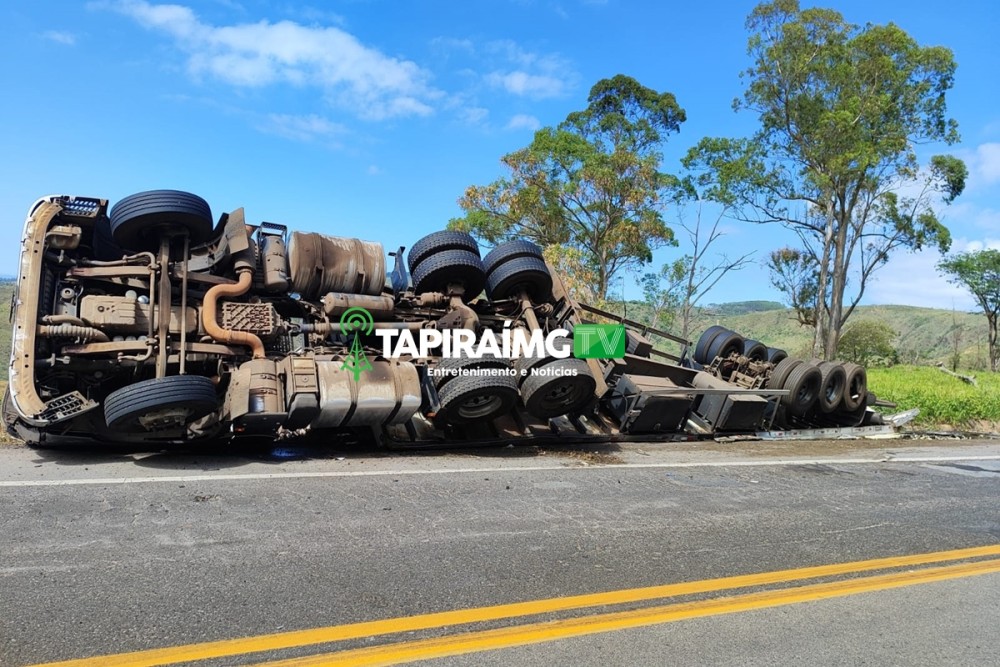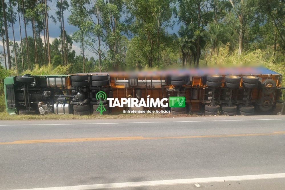 Motorista fica ferido após carreta tombar na BR-262, em Córrego Danta