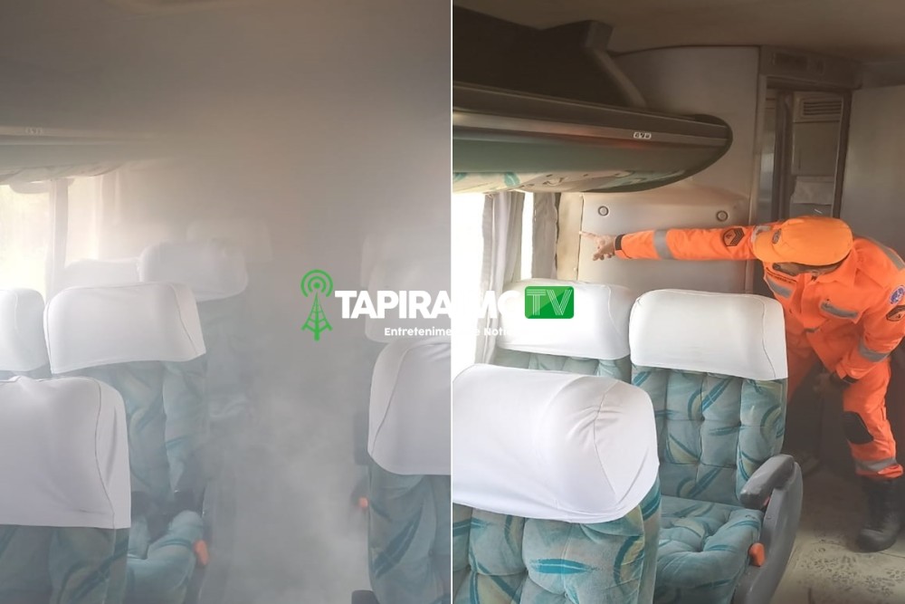 Bombeiros combatem princípio de incêndio Combate em ônibus na BR-262