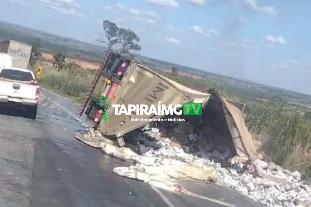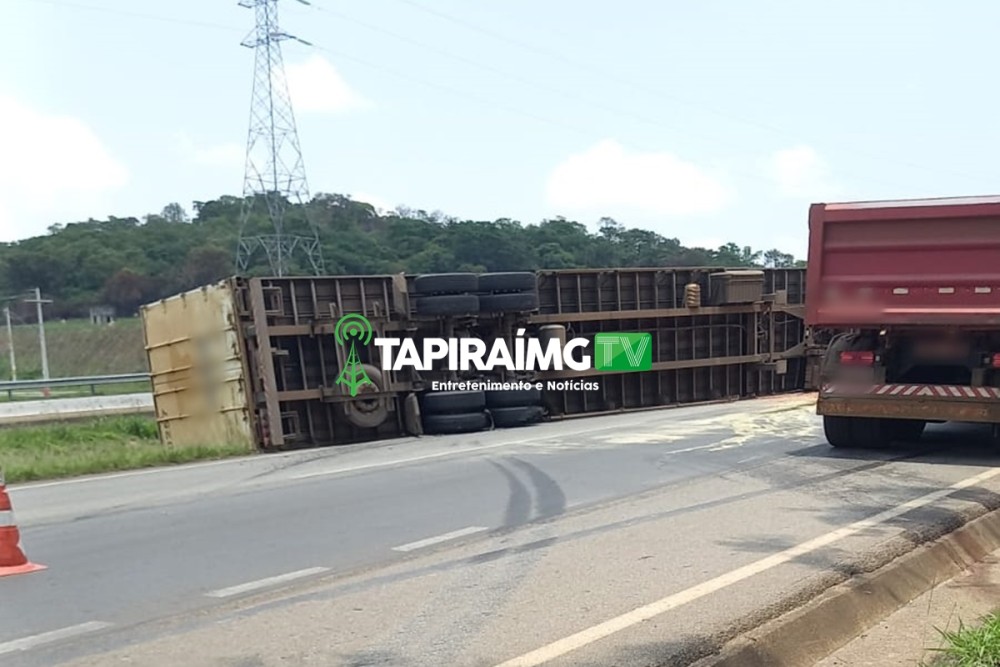 Vídeo: Motorista fica ferido após carreta tombar na BR-262, na ‘Serra de Luz’