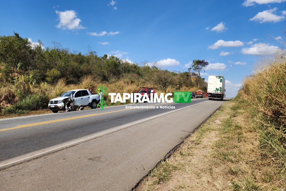 Trânsito fica lento após acidente entre carro e carreta na BR-262 em Campos Altos