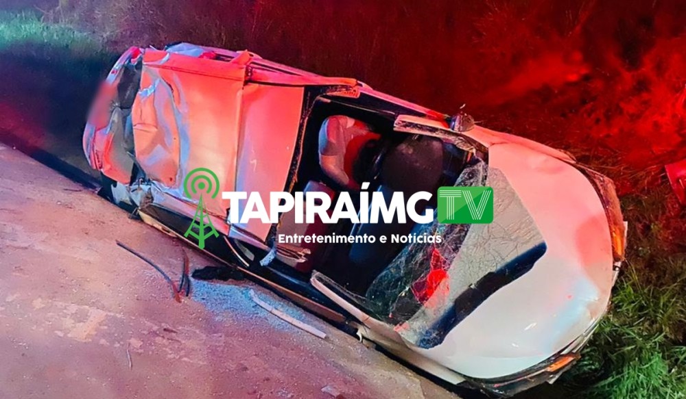 Homem fica ferido após carro sair da pista e capotar na BR-262 em Luz