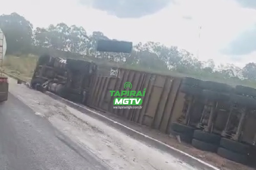Vídeo: Motorista fica ferido após tombamento de caminhão carregado de ferragens na BR-262, em Luz