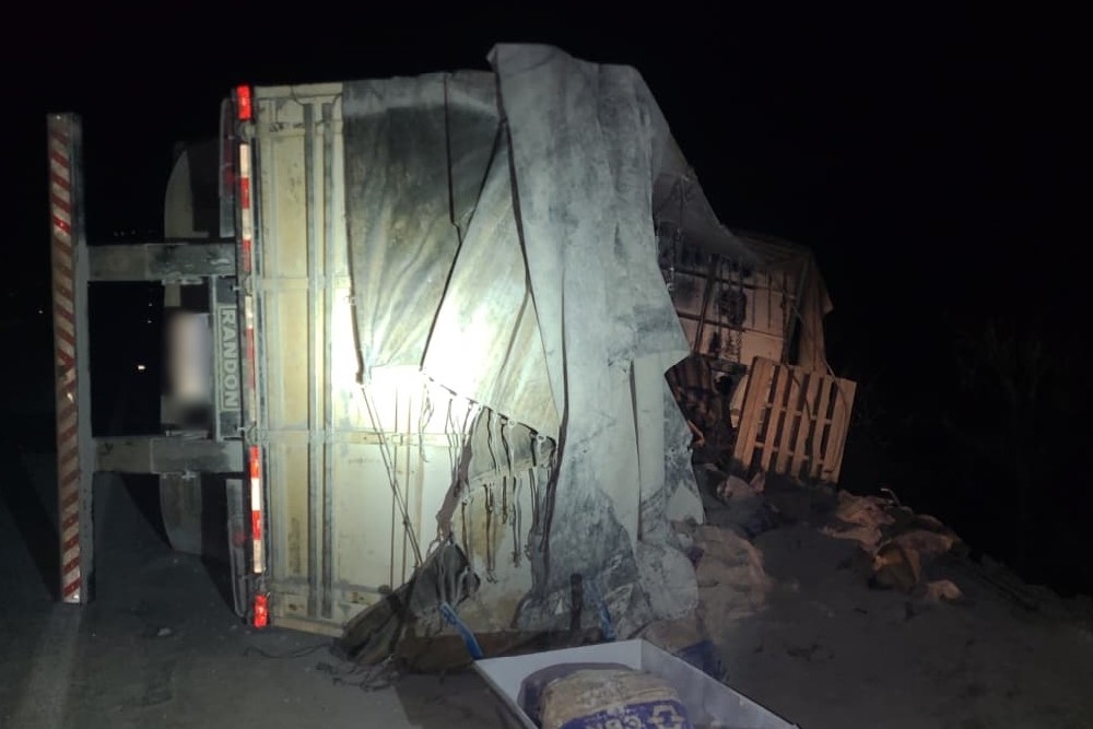Vídeo: Motorista fica ferido após carreta carregada com cimento tombar na BR-262, entre Campos Altos e Ibiá