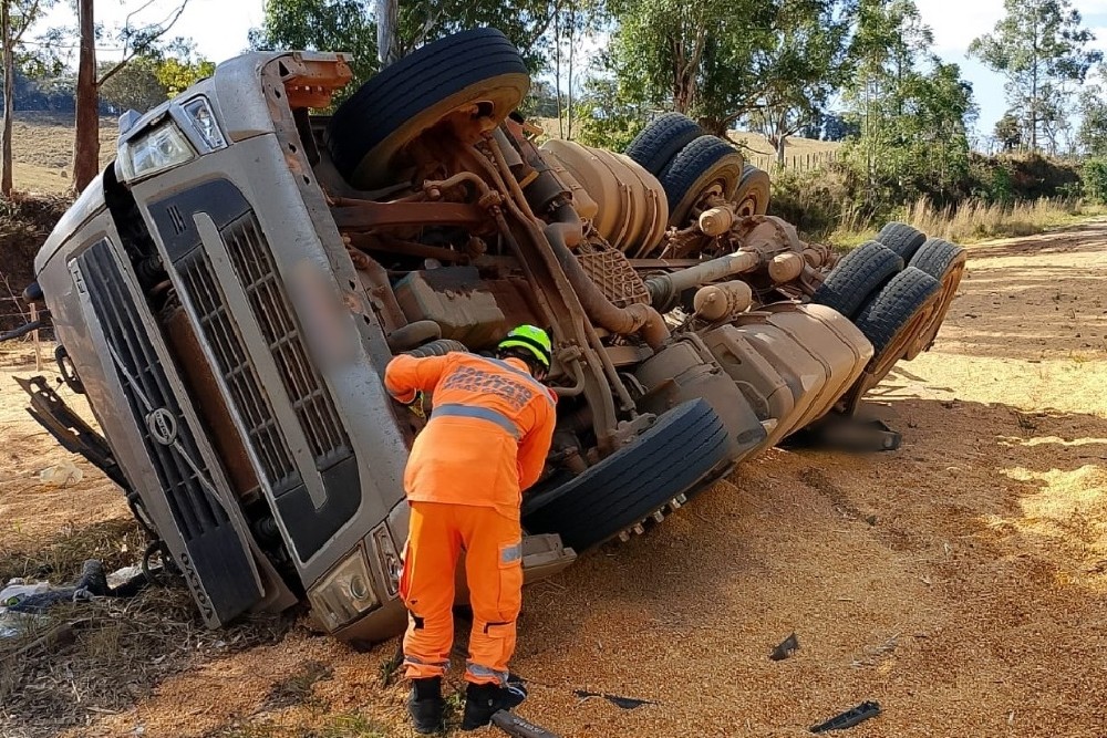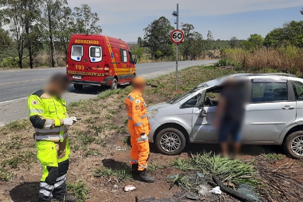 Capotamento mobiliza bombeiros e SAMU na BR-354 em Formiga