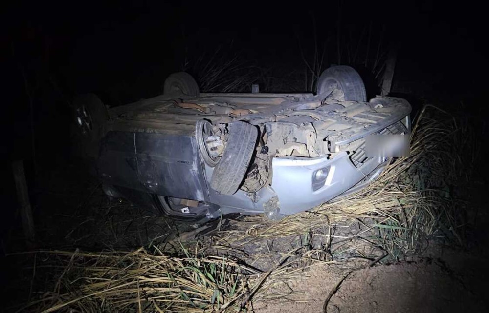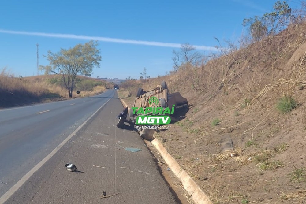 Mulher fica ferida após carro capotar na BR-354