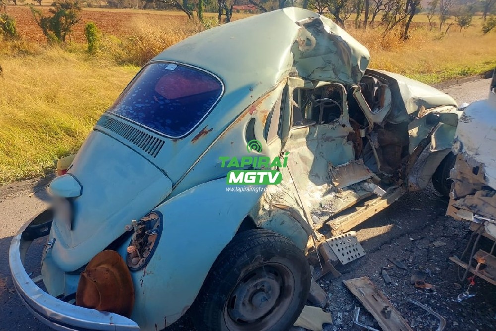 Idoso fica ferido após colisão entre fusca e carreta na BR-354, em Formiga