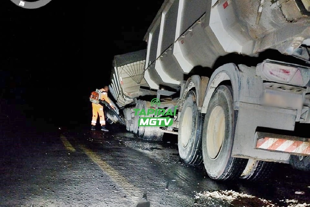 Caminhão para em “L” e evita atropelamento de motociclista na BR-354 em Arcos
