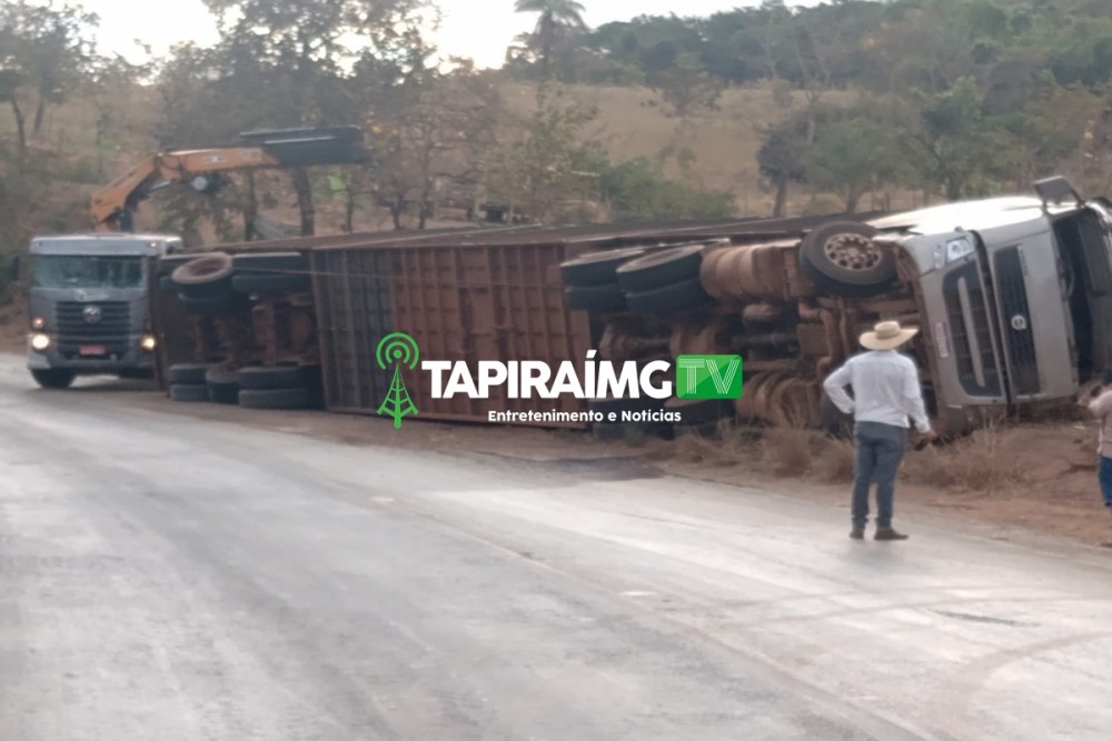Motorista fica ferido após caminhão tombar na MG-164