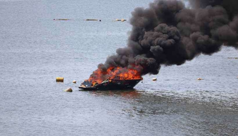 Lancha avaliada em R$ 400 mil pega fogo na represa de Furnas