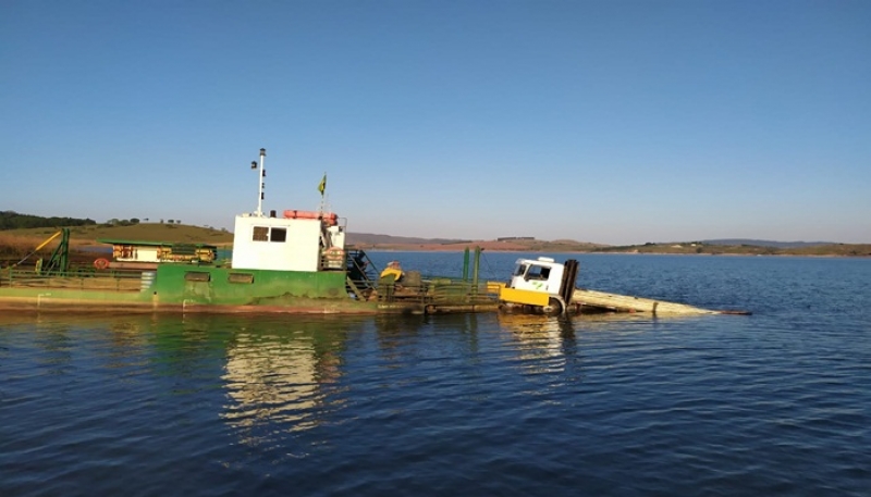 Caminhão cai de balsa durante travessia na Represa de Furnas