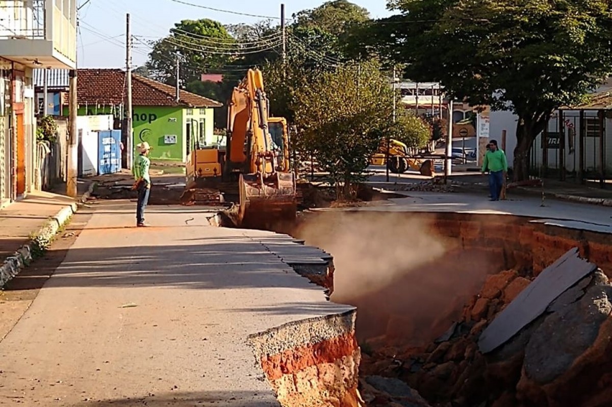 Obras de recuperação da segunda cratera na avenida João Paolinelli de Carvalho são iniciadas em Bambuí