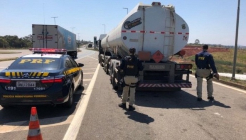 PRF apreende carreta que transportava 42 mil litros de álcool com nota fiscal falsa na BR-365