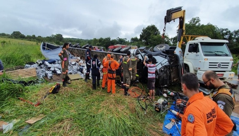 Pai e filho morrem após carreta carregada com cerveja tombar na MG-260 em Cláudio