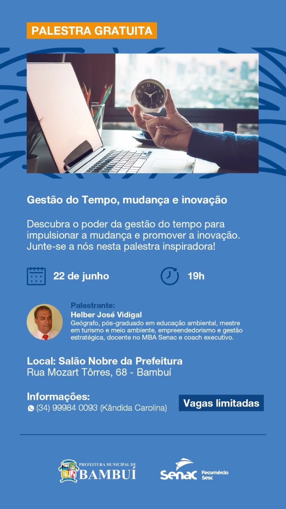 Prefeitura de Bambuí convida para palestra – “Gestão do tempo, mudança e inovação”