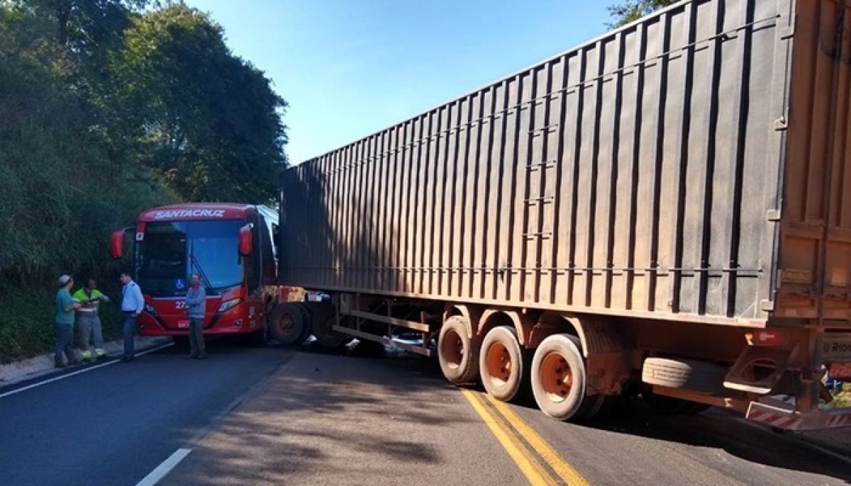 Colisão entre carreta e ônibus é registrada na MG-050
