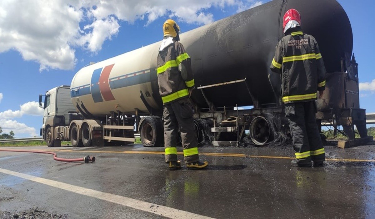 Pneus de caminhão carregado com GLP pegam fogo na BR-452 entre Araxá e Perdizes