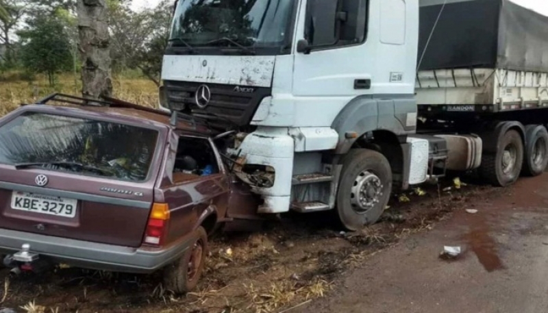Veículo bate de frente com carreta e dois irmãos morrem presos às ferragens na BR-354