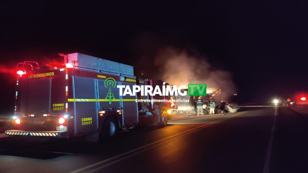 Semirreboque de carreta pegar fogo na BR-354 entre Campos Altos e São Gotardo
