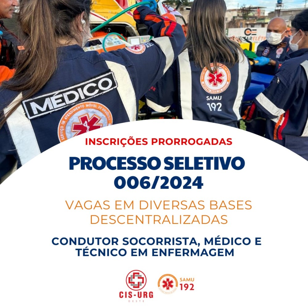 Samu prorroga inscrições para Processo Seletivo com vagas para região; há vagas para Bambuí e Luz