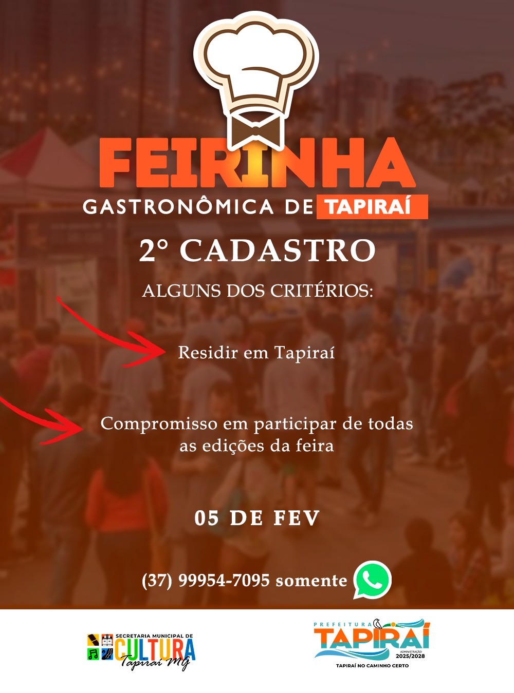 Prefeitura de Tapiraí abre 2º chamado para cadastro da Feirinha Gastronômica