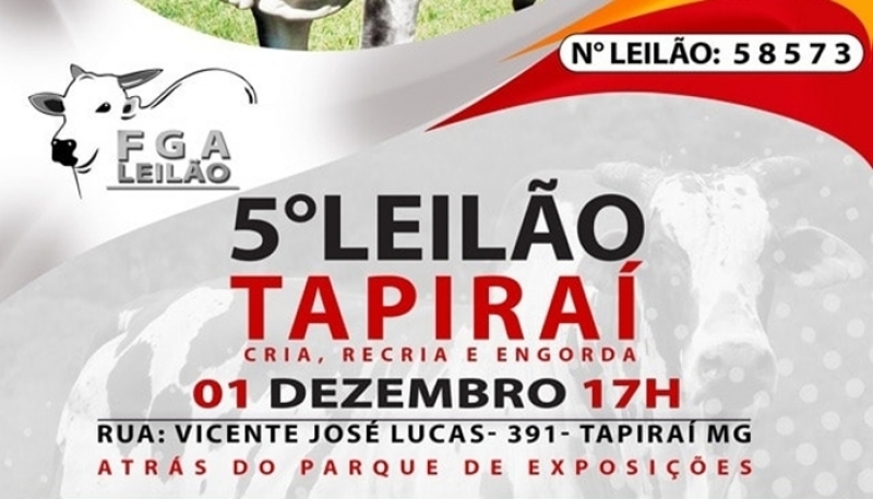 5º Leilão de Gado de Tapiraí (cria, recria e engorda) acontece neste domingo (1º)