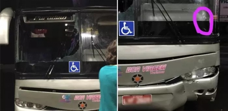 Após o ataque, o condutor jogou a lateral do ônibus para cima do carro dos bandidos que saiu de pista.