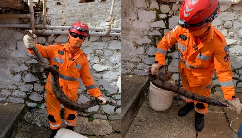 Bombeiros capturam cobra encontrada em quintal de casa, no Triângulo Mineiro