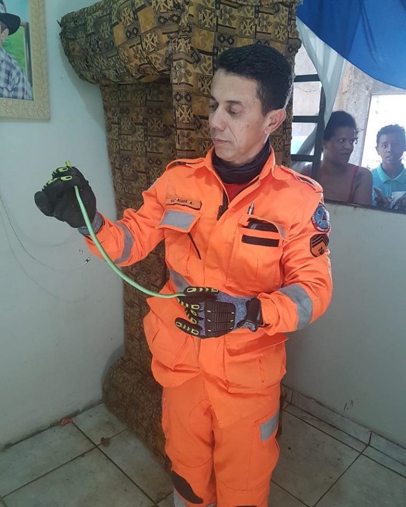 Bombeiros capturam cobra dentro de sofá em residência no Triângulo Mineiro