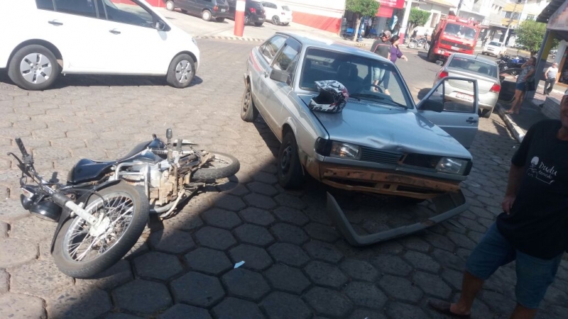 Motocicleta e automóvel sofrem colisão no centro de Piumhi